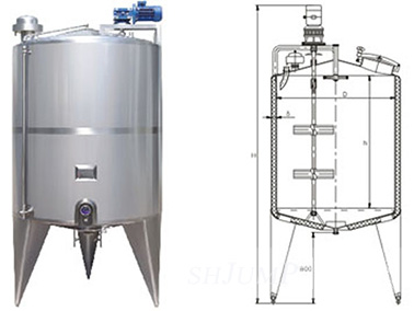 Mixing tank, also known as mixing tank, mixing tank, has the advantages of energy saving, corrosion resistance, strong production capacity, convenient cleaning, simple structure, mainly used for dairy products and sugar and other elements and a variety of drugs after mixing evenly, is an indispensable equipment for dairy products, beverages, pharmaceutical factories. The material is SUS304 or 316 stainless steel.