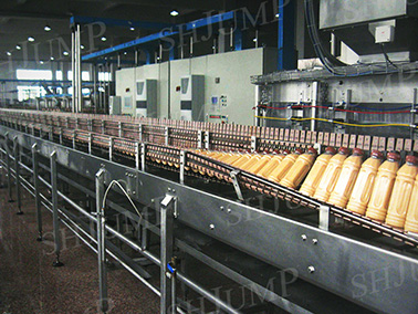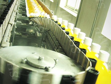 本機(jī)主要適用于茶、果汁飲料經(jīng)熱灌裝封蓋后對(duì)瓶口、瓶蓋未能被高溫物料接觸到的空隙部分進(jìn)行殺菌。灌裝封蓋后的產(chǎn)品,經(jīng)本機(jī)自動(dòng)翻轉(zhuǎn)90將瓶放平,通過(guò)物料溫度對(duì)瓶蓋內(nèi)壁進(jìn)行殺菌,進(jìn)入噴淋冷卻機(jī),該機(jī)采用進(jìn)口傳動(dòng)鏈,平穩(wěn)可靠,對(duì)瓶身無(wú)損壞,傳達(dá)速度可無(wú)級(jí)調(diào)整。