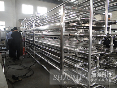 上海加派機械科技有限公司新研發(fā)的節(jié)能型管式殺菌機,包括套管和列管,由行業(yè)知名專家黃東升工程師設計,獲得9項產(chǎn)品專利。充分利用物料自身的熱量交換以達到節(jié)能的目的。全自動果醬殺菌機是我公司參照意大利技術(shù),以及我公司多年來在行業(yè)中的經(jīng)驗開發(fā)研制,專門用來加工處理濃縮果醬以及其他高粘度物料的殺菌機。