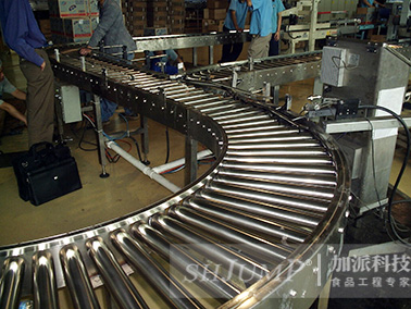 果蔬滾筒輸送機主要由傳動滾筒、機架、支架、驅(qū)動部等部分組成,結(jié)構(gòu)簡單,可靠性高,使用維護方便,具有輸送量大,速度快,運轉(zhuǎn)輕快,能夠?qū)崿F(xiàn)多品種共線分流輸送的特點。