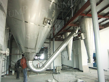 噴霧干燥機(jī)是液體工藝成形和干燥工業(yè)中較廣泛應(yīng)用的工藝。適用于從溶液、乳液、懸浮液和糊狀液體原料中生成粉狀、顆粒狀固體產(chǎn)品。因此,當(dāng)成品的顆粒大小分布、殘留水份含量、堆積密度和顆粒形狀必須符合嚴(yán)格的標(biāo)準(zhǔn)時(shí),噴霧干燥是一道十分理想的工藝。分離心式和壓力式,根據(jù)不同的物料特性選擇不同的霧化方式。廣泛適用于化工、食品、醫(yī)藥行業(yè)。離心噴霧:適用于高黏度或者帶固體顆粒的物料,霧化操作彈性較寬。可設(shè)計(jì)生產(chǎn)能力在±25%范圍內(nèi)調(diào)節(jié)。壓力式噴霧塔:適用于低黏度和純液體物料,利用高壓泵(8-20MPa),從特制的噴嘴噴出。
