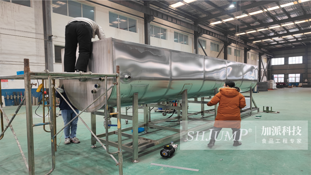 2021年年末與銀鷺集團溝通定制,為集團公司飲料生產(chǎn)線前處理,定制加工大型花生預(yù)煮設(shè)備。上海加派機械科技有限公司有豐富的非標定制特種加工設(shè)備定制加工經(jīng)驗