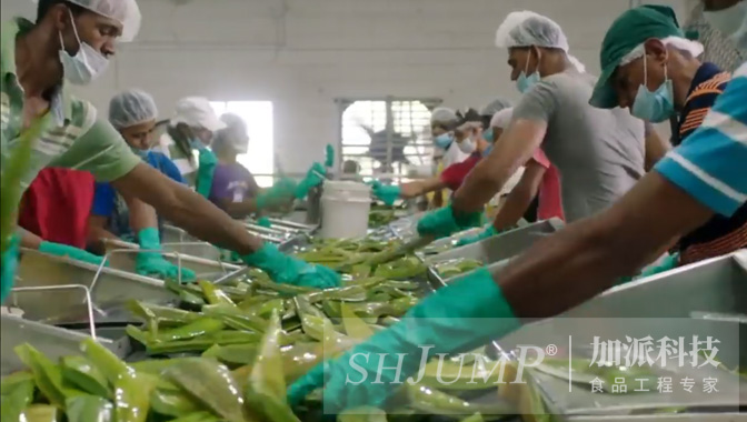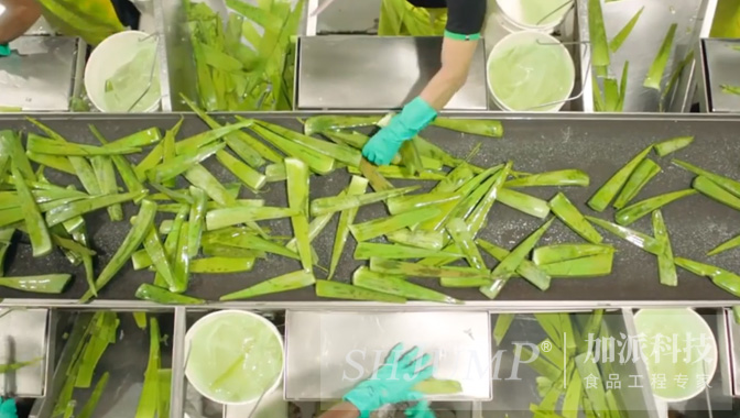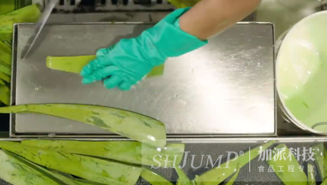 原料的選擇;清洗、去皮、切小塊;護色;硬化、除苦;漂洗;調配;熱灌裝;殺菌、冷卻;本發(fā)明的特點是:本發(fā)明制備出來的產(chǎn)品外觀呈乳白色,蘆薈顆粒晶瑩,風味純正,具有蘆薈肉特有的風味,蘆薈肉爽脆,帶輕微苦味,食后回甘、爽凈;保留了蘆薈中富含的各種營養(yǎng)成分,且穩(wěn)定性好,保質期長,又能消除蘆薈的刺激性氣味和滋味使其更適宜直接飲用,效果良好;