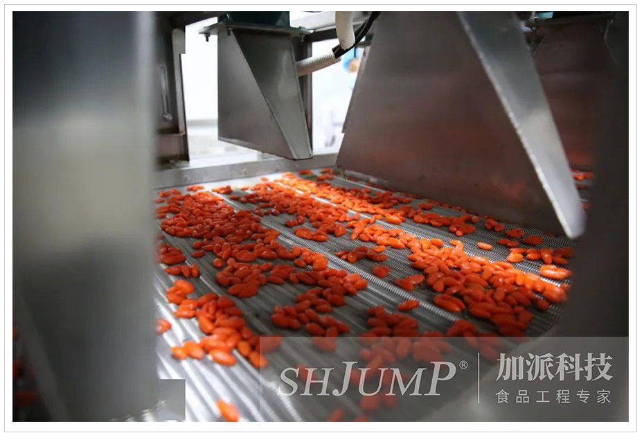 在枸杞生產(chǎn)線上,引入了先進(jìn)的空氣動(dòng)力能全自動(dòng)、智能化枸杞烘干設(shè)備對枸杞進(jìn)行烘干。經(jīng)過清洗、烘干的枸杞會使用色選設(shè)備進(jìn)行色選、分級,然后通過旋風(fēng)除塵、靜電毛發(fā)分離等工序后使用紫外線殺菌設(shè)備進(jìn)行殺菌消毒。枸杞包裝則采用智能化包裝設(shè)備,極大地提升了包裝效率。